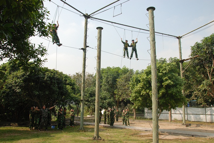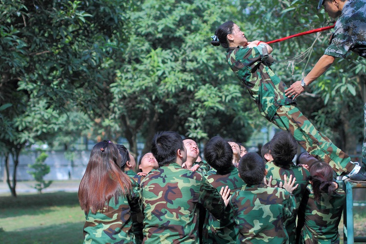 二、戶外團(tuán)隊拓展活動。“凝聚 2014”卓越團(tuán)隊訓(xùn)練營活動在軍歌嘹亮的訓(xùn)練基地舉行,內(nèi)容包括連隊建設(shè)組織PK、團(tuán)結(jié)信任拓展項目信任背摔、雙人合作高空拓展項目天使之手、團(tuán)隊溝通拓展項目驛站傳書、團(tuán)隊協(xié)作拓展項目環(huán)環(huán)相扣、團(tuán)隊凝聚力熔煉拓展項目畢業(yè)墻。