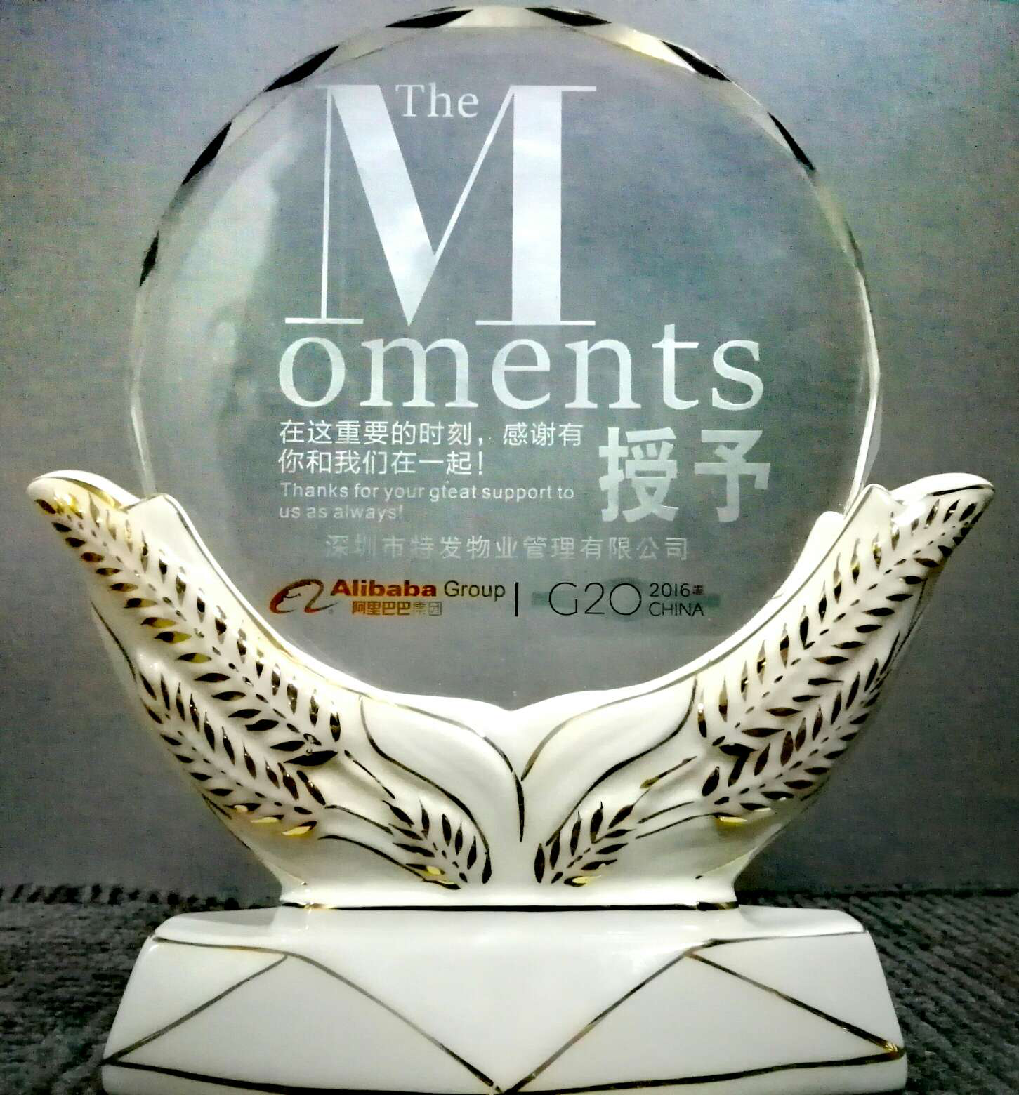 在獎杯上刻有一句話:“在這個重要的時刻,感謝有你和我們在一起”。這是阿里巴巴集團對我們團隊的高度肯定,也是對我們的信任。相信有了這一次的并肩作戰(zhàn),未來我們會再接再厲和阿里在公共事務接待上共同奮斗。未來可能還會有更多更艱難的任務,我們將繼續(xù)追求卓越,讓特發(fā)服務成為每個客戶心中的驕傲。