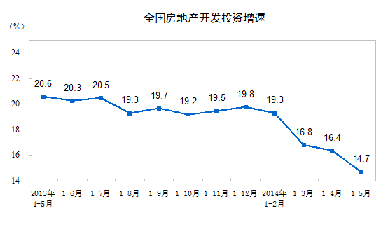 前5月房地產(chǎn)開發(fā)投資同比增長14.7% 增速繼續(xù)回落